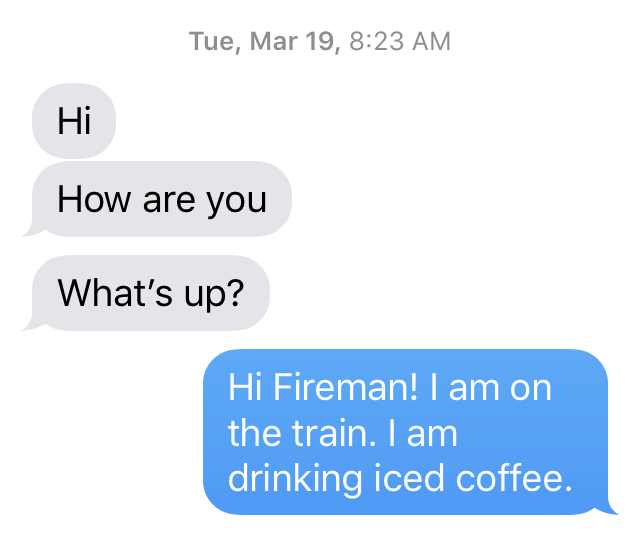 "Yes, I know, thanks—he's good!" I said. "He's a teen. We're letting him take walks."